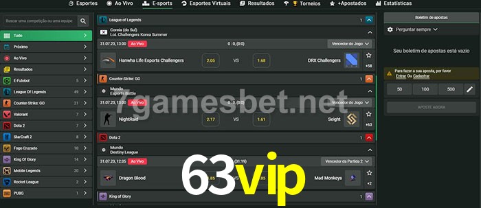 A aposta 63vip oferece aos jogadores a experiência mais conveniente de apostas em eSports!